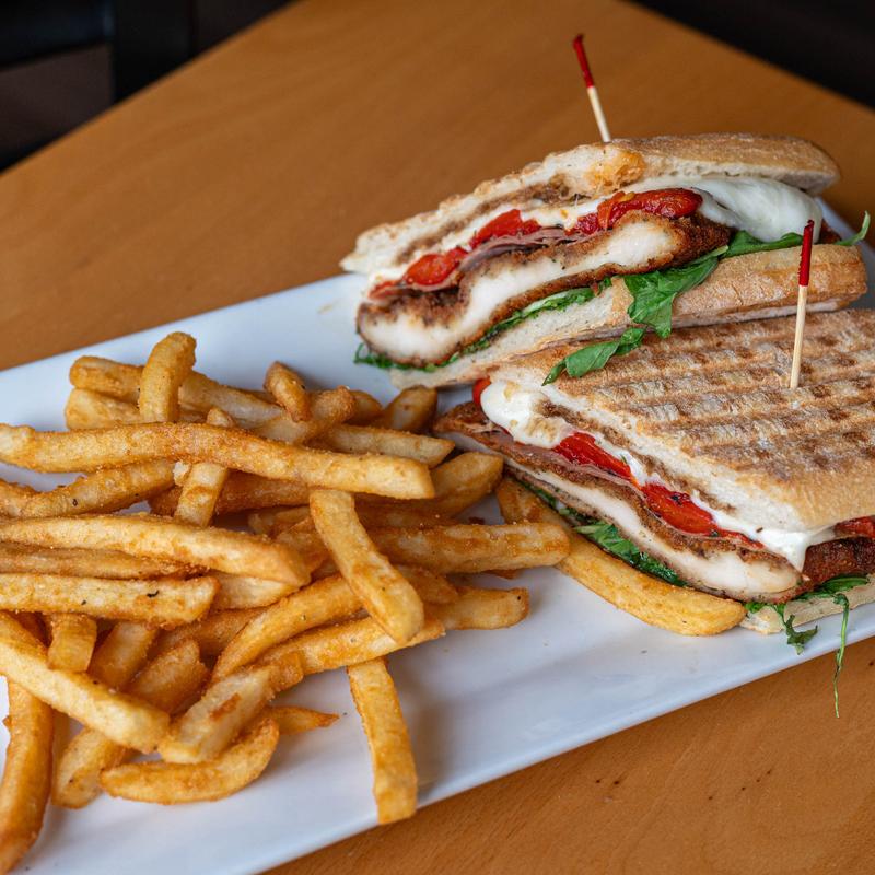 Chicken cutlet, roasted peppers, fresh mozzarella, balsamic dressing, and ciabatta • Make it Sweet potato or Tuscan fries +$2.00