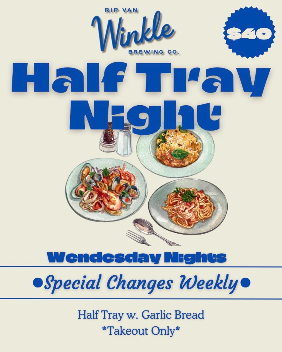 Half Tray Night - Every Wednesday! Special changes weekly, Half Tray w. Garlic Bread for just $40! *Takeout Only*